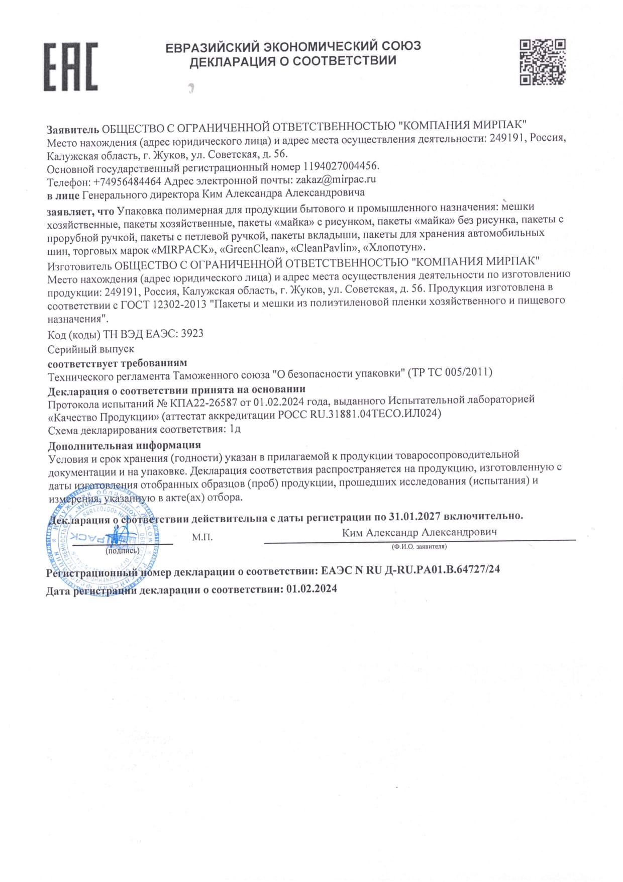 Сертификаты MIRPACK